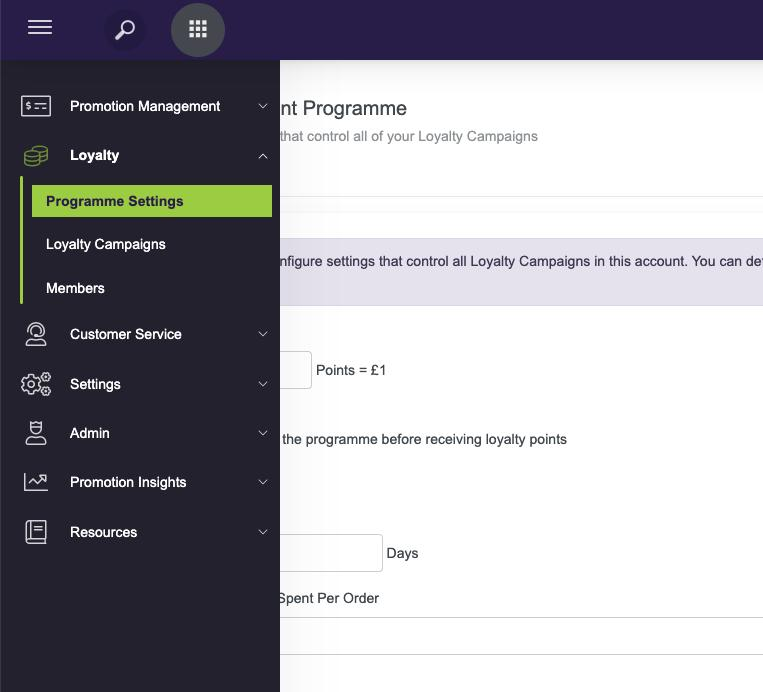 You will find Loyalty within promotion management in the left hand menu. Navigate to the Programme Settings to create the overall settings for all of your loyalty campaigns.